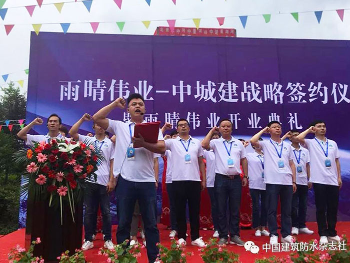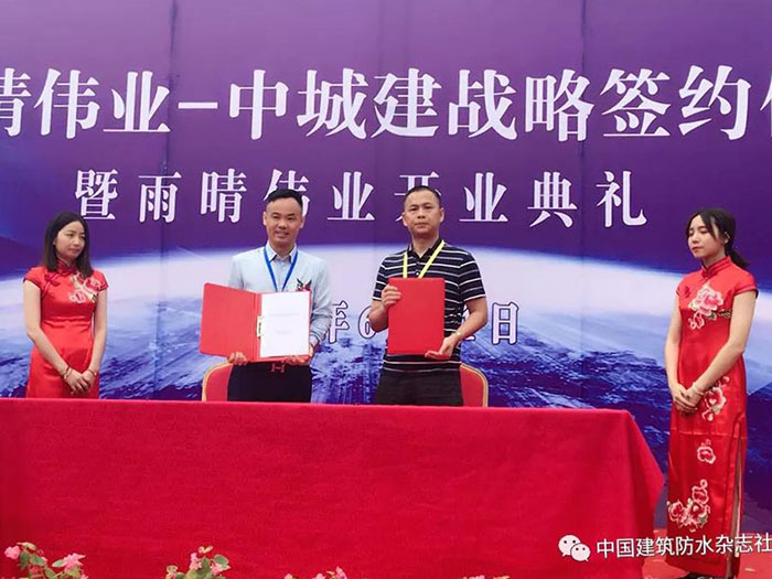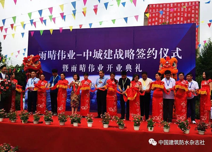 2018年6月21日, 湖北雨晴偉業(yè)防水技術(shù)發(fā)展有限公司開業(yè)慶典暨中城建戰(zhàn)略簽約儀式活動現(xiàn)場賓客云集,人頭攢動,場面火爆、掌聲如雷。這標(biāo)志著雨晴偉業(yè)從今天起正式的面向大眾,面向市場,也意味著雨晴偉業(yè)工廠的正式運(yùn)營。