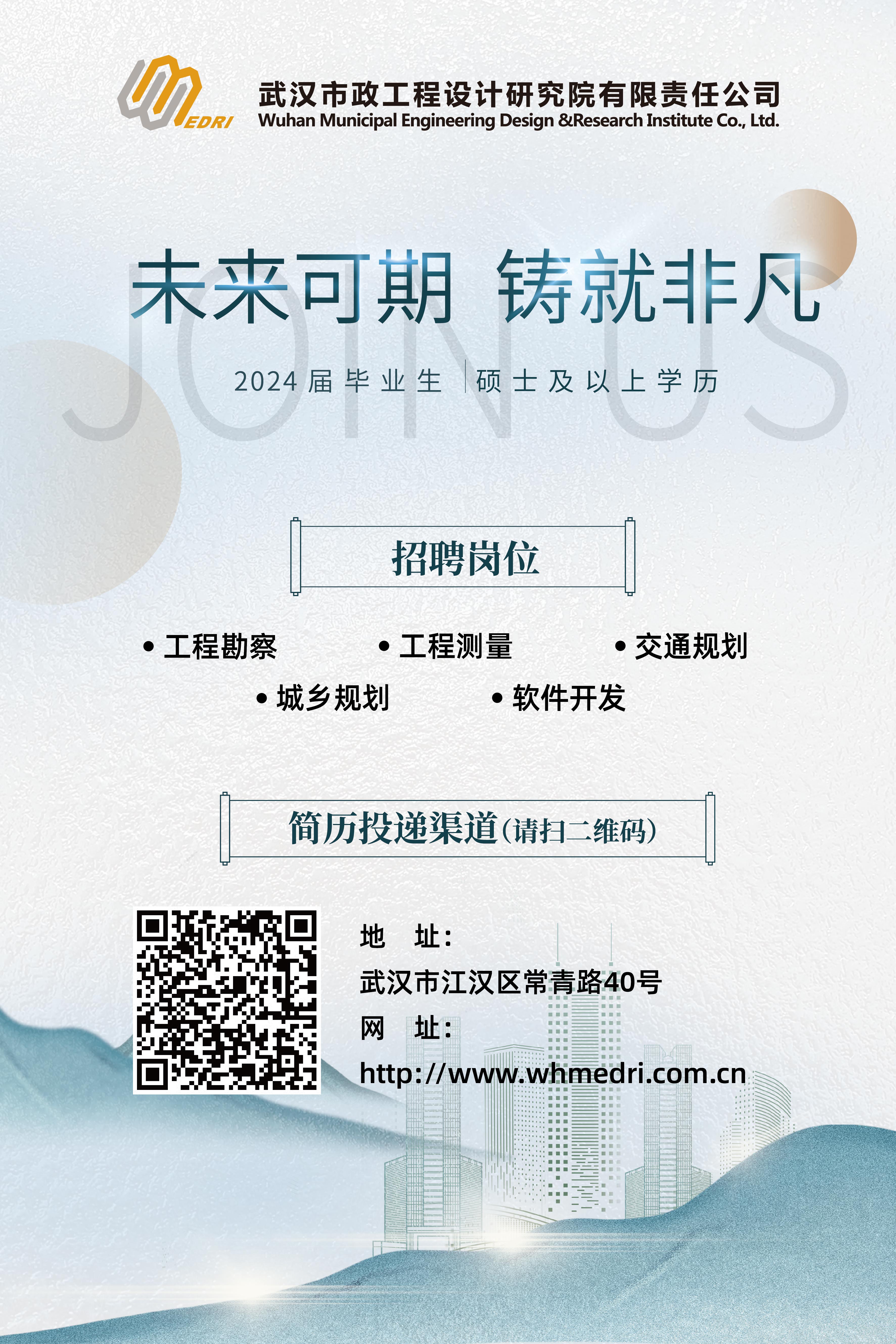 未來(lái)可期 鑄就非凡 武漢市政設(shè)計(jì)院2024屆校園招聘