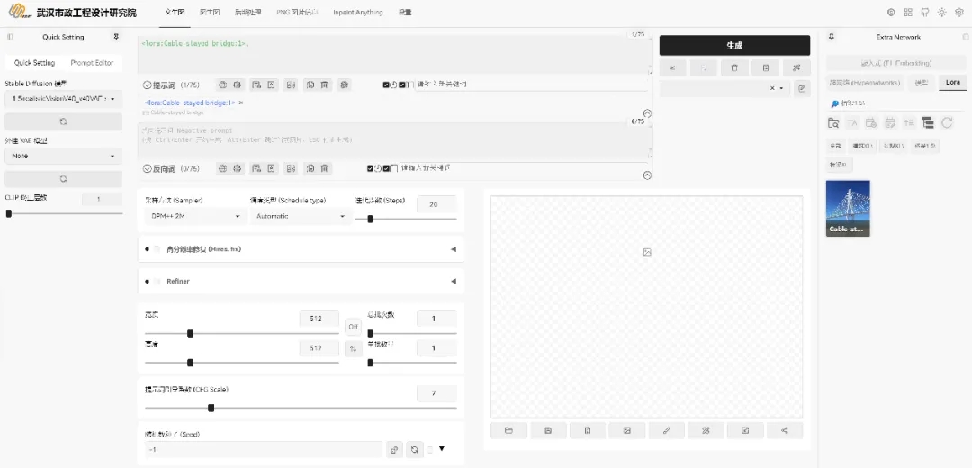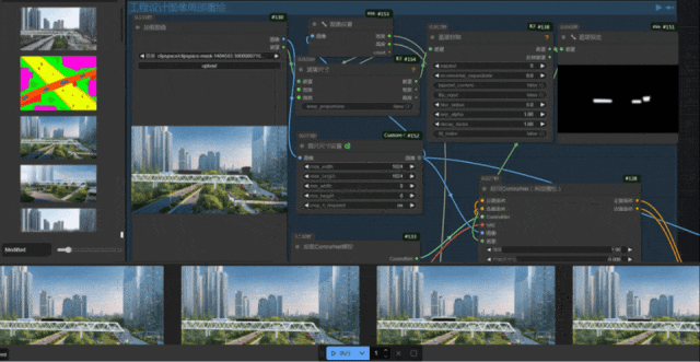 ? ? 武漢市政院在 AIGC 生成效果圖方案領(lǐng)域,通過深度學(xué)習(xí)算法優(yōu)化與專業(yè)圖像數(shù)據(jù)訓(xùn)練,搭建了市政工程效果圖方案自動化生成平臺1.0版,構(gòu)建了路橋、建筑等專業(yè)圖像生成大模型的模型庫。平臺通過引入DeepSeek-R1 等前沿大語言模型,借助其強大的深度語義理解機制與多模態(tài)認知能力,可解構(gòu)模糊設(shè)計意圖,自動生成符合工程規(guī)范與藝術(shù)審美的精準(zhǔn)提示詞,突破傳統(tǒng)人工描述的主觀性與局限性;同時,依托自定義節(jié)點技術(shù),成功開發(fā)并驗證了多套一鍵生成效果圖的高效工作流,為設(shè)計團隊提供了豐富的靈感和多元化的選擇。