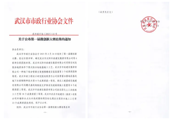 ? ? 近日,武漢市市政行業(yè)協(xié)會首屆微創(chuàng)新大賽圓滿落幕。在這場匯聚22家行業(yè)單位、70余項創(chuàng)新技術(shù)的專業(yè)賽事中,武漢市政院以公司副總工程師和禮紅為代表的黨員技術(shù)骨干主動領(lǐng)銜攻關(guān),憑借三項"微創(chuàng)新技術(shù)"分別榮獲一、二、三等獎,成為唯一獲此殊榮的設(shè)計研究單位。