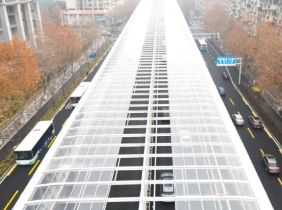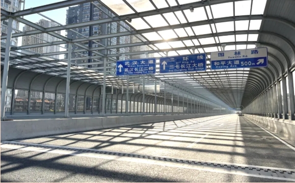 ? ? 項(xiàng)目設(shè)計(jì)團(tuán)隊(duì)始終秉持 “輕量化、智能化、綠色化” 理念,多項(xiàng)技術(shù)應(yīng)用填補(bǔ)區(qū)域空白,樹立行業(yè)新標(biāo)桿。在鋪裝材料與工藝上,主線高架鋼箱梁橋面采用澆注式瀝青鋪裝,相比傳統(tǒng)方案減重16%,既降低橋梁結(jié)構(gòu)負(fù)荷、提升安全性,又縮短施工周期;鋼箱梁采用U肋全熔透智能焊接,大幅提高結(jié)構(gòu)疲勞壽命,積極推進(jìn)鋼箱梁U肋焊接工藝的發(fā)展。尤為引人注目的是,本項(xiàng)目集中展現(xiàn)了三大創(chuàng)新亮點(diǎn):它擁有全國最長(zhǎng)的連續(xù)全封閉聲屏障,是湖北省首例“光伏+市政”的融合實(shí)踐,更在武漢率先實(shí)現(xiàn)了聲屏障光伏發(fā)電的應(yīng)用,為綠色市政建設(shè)樹立了新的樣板。