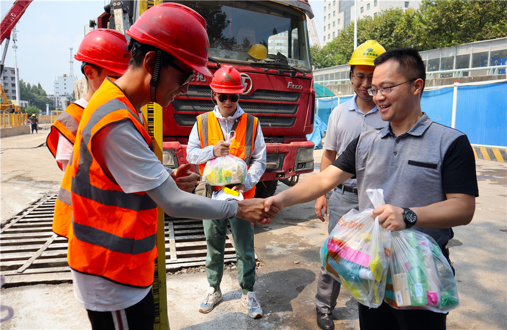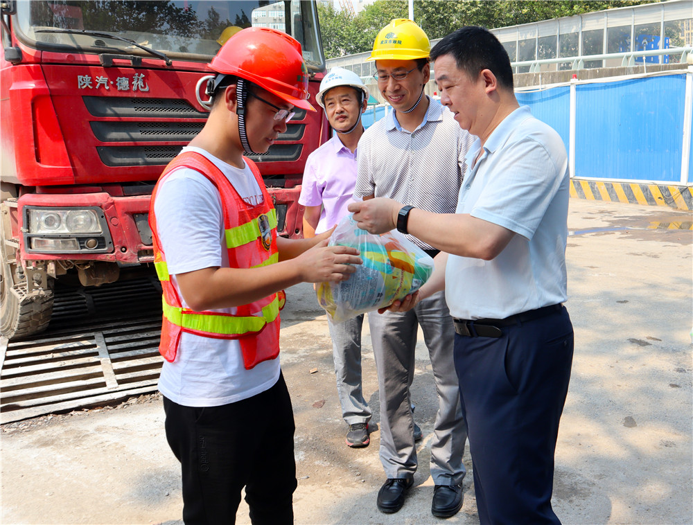 連續(xù)多日的高溫籠罩著武漢大地,然而公司勘測(cè)、監(jiān)理、檢測(cè)、項(xiàng)目管理等專業(yè)員工依然頂高溫冒酷暑,堅(jiān)守在工程建設(shè)最前線。8月6日上午,公司黨委書記蔡輝、副總經(jīng)理陳建斌帶領(lǐng)相關(guān)部門工作人員前往大東湖傳輸系統(tǒng)項(xiàng)目、武漢市軌道交通5號(hào)線工程、黃家湖綜合整治工程所在地,親切慰問奮戰(zhàn)在一線的員工,在炎熱的酷夏中為他們送去一份清涼。