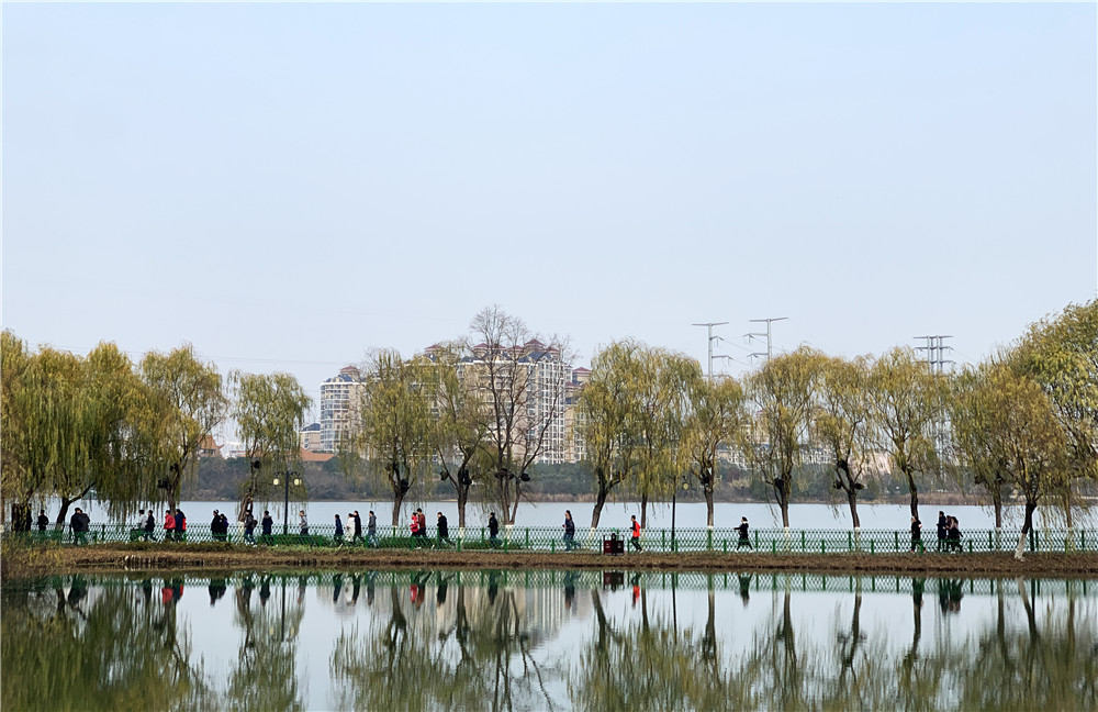 徒步比賽從金銀湖濕地公園廣場出發(fā),沿金銀湖步道到環(huán)湖路出口折返,全程6公里。當(dāng)天,胸前帶著比賽標(biāo)識的比賽選手一路蜿蜒前行,精神抖擻地在金銀湖濕地公園行走。