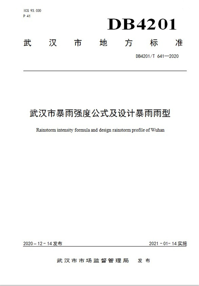 為科學(xué)反映暴雨特征,規(guī)范排水防澇設(shè)施規(guī)模量化計(jì)算公式,進(jìn)一步提高防汛減災(zāi)能力,由我公司主編修訂的《武漢市暴雨強(qiáng)度公式及設(shè)計(jì)暴雨雨型》標(biāo)準(zhǔn),于12月14日正式發(fā)布。