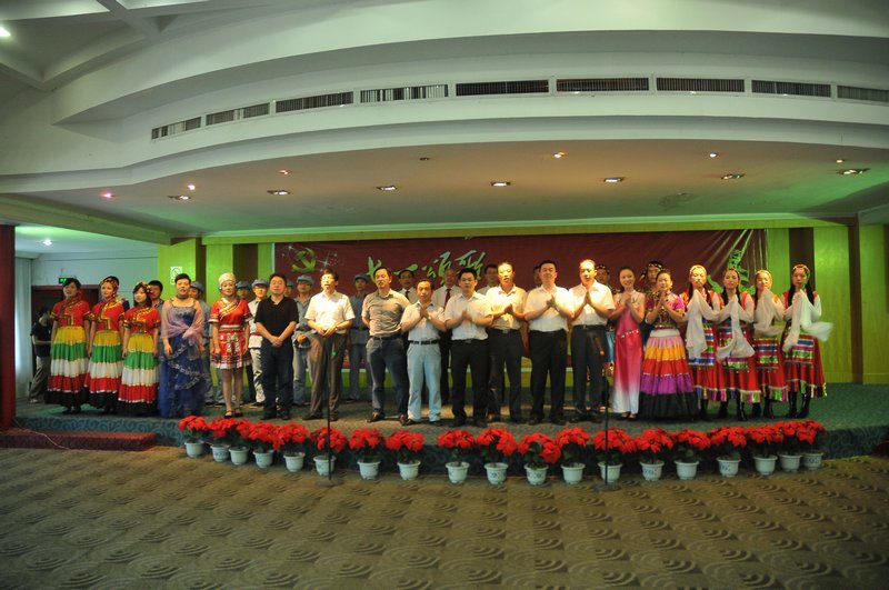 在莊嚴(yán)的《國(guó)際歌》中,總結(jié)表彰大會(huì)結(jié)束,一臺(tái)由公司黨員和入黨積極分子自編、自演的文藝演出正式開始,《再唱山歌給黨聽》、《長(zhǎng)征》、《情深誼長(zhǎng)》等精彩的歌舞節(jié)目贏得了觀眾的陣陣掌聲,演出現(xiàn)場(chǎng)洋溢著歡樂(lè)、喜慶的氣氛。演出最后,各位領(lǐng)導(dǎo)走到臺(tái)上,與全體演員和觀眾一起高唱《沒(méi)有共產(chǎn)黨就沒(méi)有新中國(guó)》,臺(tái)上臺(tái)下感情交匯,將現(xiàn)場(chǎng)氣氛推向高潮。
