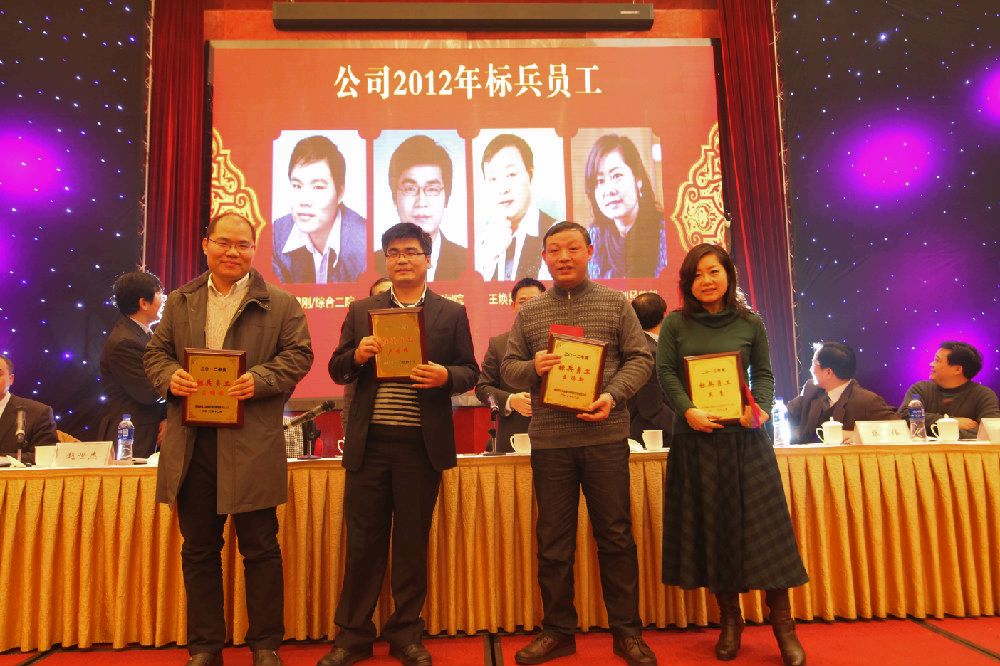 ??? 公司黨委書記蔡輝同志宣讀了對先進集體、優(yōu)秀員工和標兵員工的表彰決定,以及對公司2012年科技成果獲獎項目的獎勵通知。2012年,這些獲獎的部門和員工付出了巨大的努力,創(chuàng)造了優(yōu)異的成績,他們也是公司過去一年發(fā)展和奮斗的縮影。