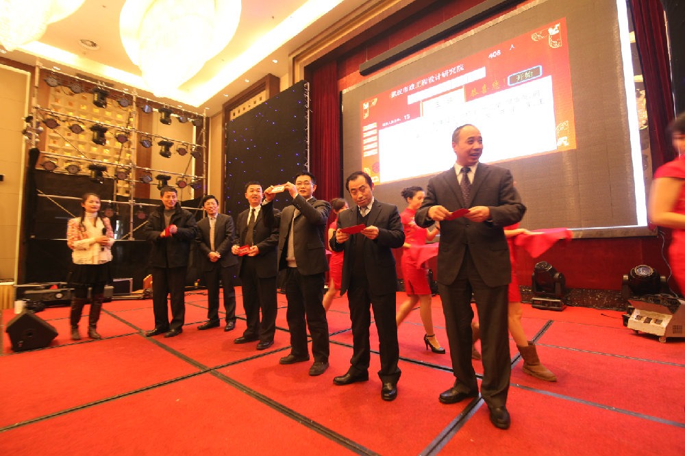 ??? 總結表彰大會結束后,一臺異彩紛呈的迎春文藝演出拉開了帷幕。喜氣熱鬧的《東方鼓韻》,寓意著新一年的奮進與收獲;頗具詼諧意味的舞蹈《江南STYLE》,引得現(xiàn)場爆發(fā)出陣陣掌聲和笑聲;三曲經(jīng)典老歌匯成的情歌串燒,則喚起了現(xiàn)場觀眾對經(jīng)典的美好回憶。文藝演出在《新年快樂》的歌聲里落幕。