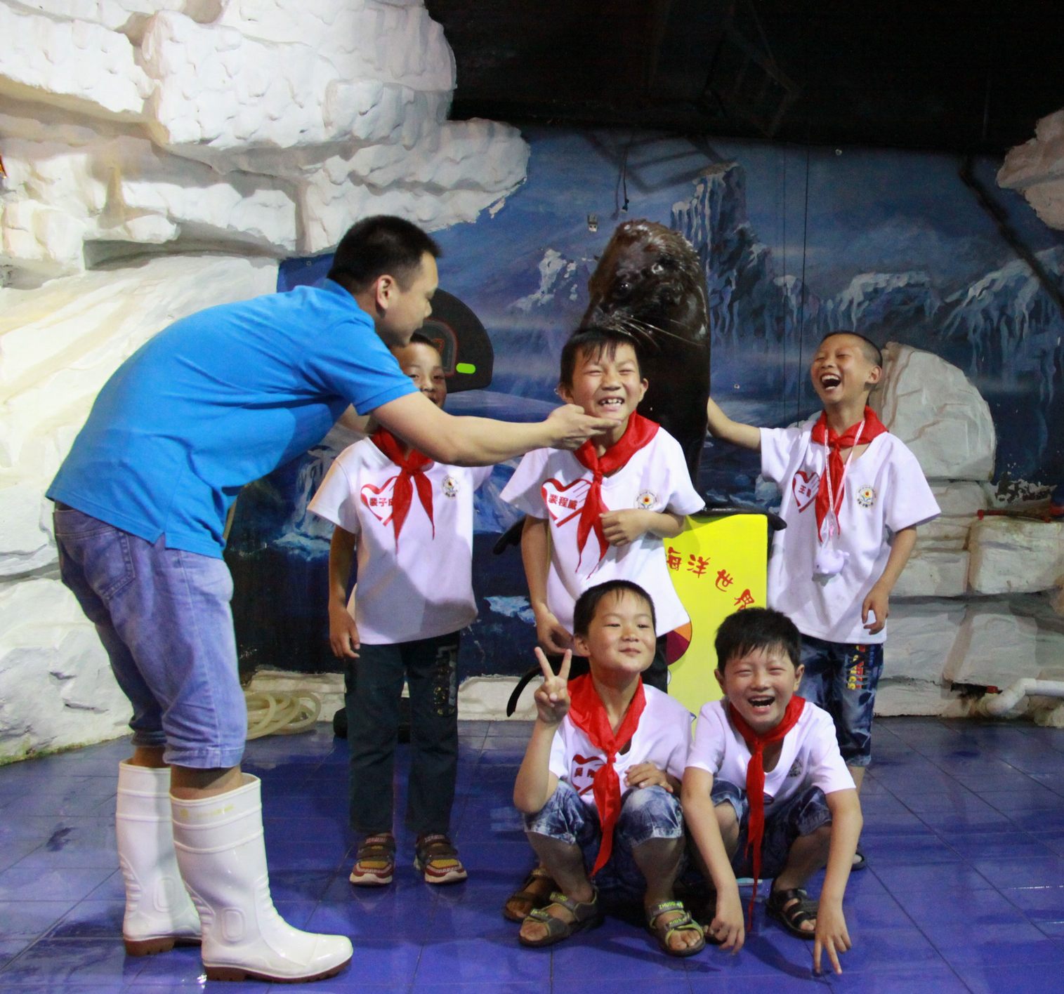 ??? 經(jīng)過(guò)短暫的休整,大家乘車(chē)來(lái)到東湖海洋世界進(jìn)行參觀(guān)。剛一進(jìn)館,孩子們就被一片神秘的海底世界所吸引了,他們趴在玻璃上欣賞著自己從沒(méi)見(jiàn)過(guò)的海洋動(dòng)物,和喜歡的動(dòng)物合影,穿過(guò)海底隧道時(shí),時(shí)而出現(xiàn)的海洋動(dòng)物都能讓他們發(fā)出一陣陣的驚嘆。美人魚(yú)表演和海豹表演更讓孩子們開(kāi)心不已,他們不停的拍手鼓掌,并輪流和可愛(ài)的海豹合影。