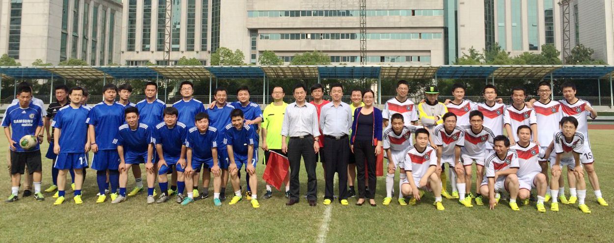 ??? 5月7日下午,位于北湖的漢口體育中心內(nèi)人聲鼎沸,活力四射,公司“慶五四”足球友誼賽在這里舉行。公司黨委書記蔡輝、副總經(jīng)理張偉及各分工會主席、部門負(fù)責(zé)人到現(xiàn)場觀看了比賽。