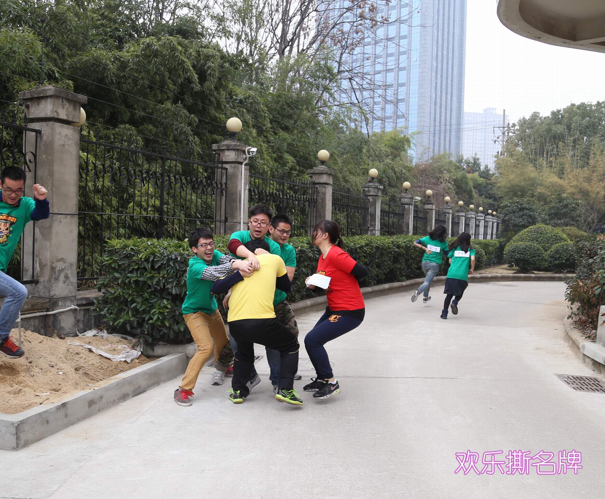 ??? 活動(dòng)的最后一個(gè)環(huán)節(jié),就是撕名牌。每名隊(duì)員背后貼有自己名字的名牌,三支隊(duì)伍互相撕下對方的名牌,被撕下名牌者即遭淘汰,每隊(duì)最終保存名牌人員最多者獲勝。此時(shí),綠、黃兩隊(duì)在前幾個(gè)環(huán)節(jié)中獲得的錦囊將發(fā)揮作用,包括“死亡筆記”(持有者寫下名字的隊(duì)員直接出局)、“傷害反彈”(被撕掉名牌者與實(shí)施行為者同時(shí)出局)、“女神的寬恕”(女隊(duì)員指定任意一名出局的參賽者復(fù)活)、“傷害冬眠”(撕掉技能持有人的名牌者冬眠15分鐘,不能攻擊,只能防守)。
