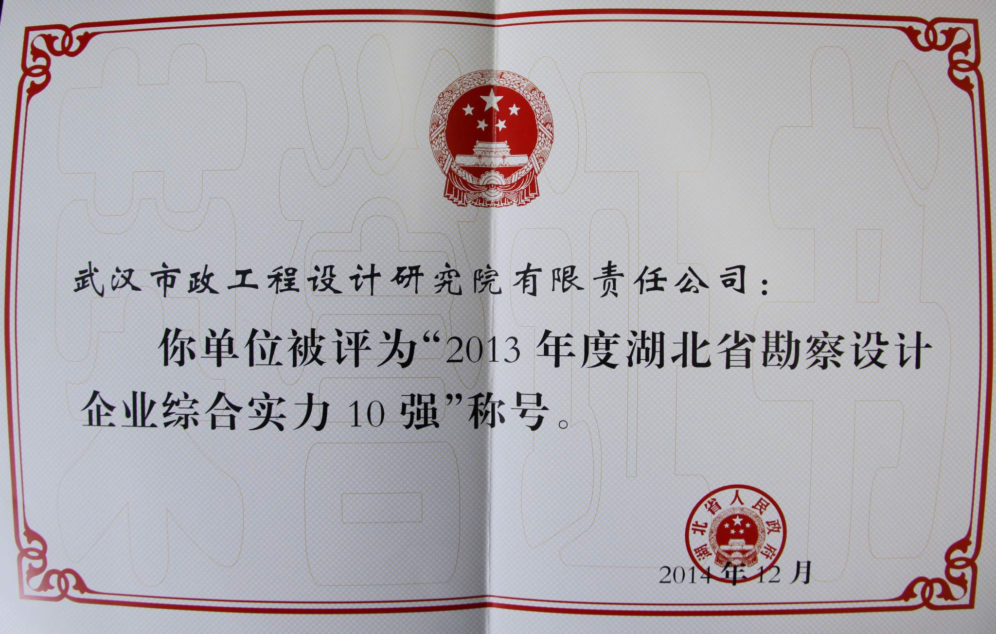 熱烈祝賀公司榮獲“2013年度湖北省勘察設(shè)計企業(yè)綜合實力十強”稱號