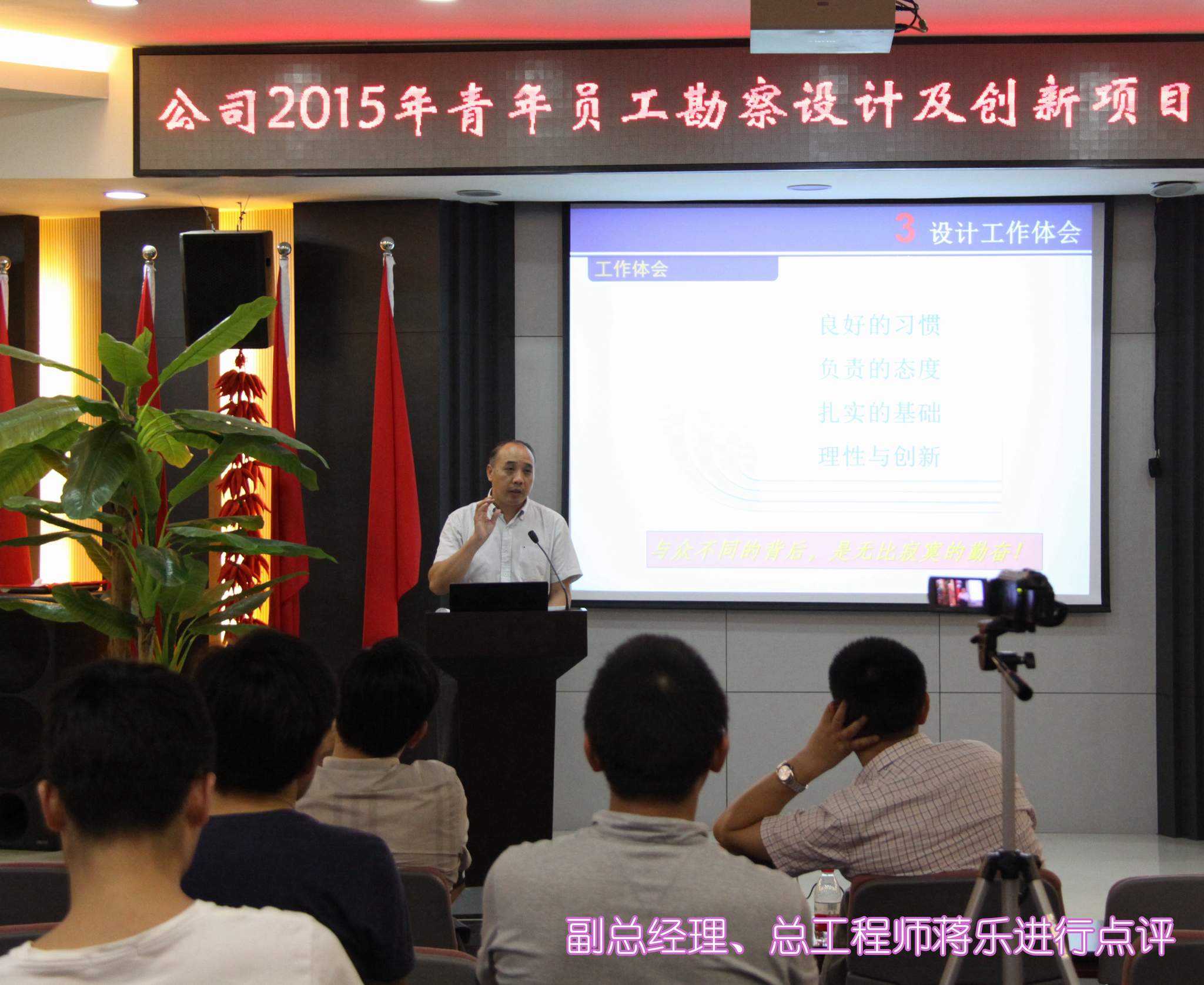 ??? 公司副總經(jīng)理、總工程師蔣樂對整場比賽進(jìn)行了點評,他從匯報思路、匯報形式等方面出發(fā),總結(jié)出了匯報過程中的五個忌諱,包括“照本宣科”、“平鋪直敘”、“不交流互動”、“多人匯報”、“無明確結(jié)論”,讓在場的各位員工受益匪淺。