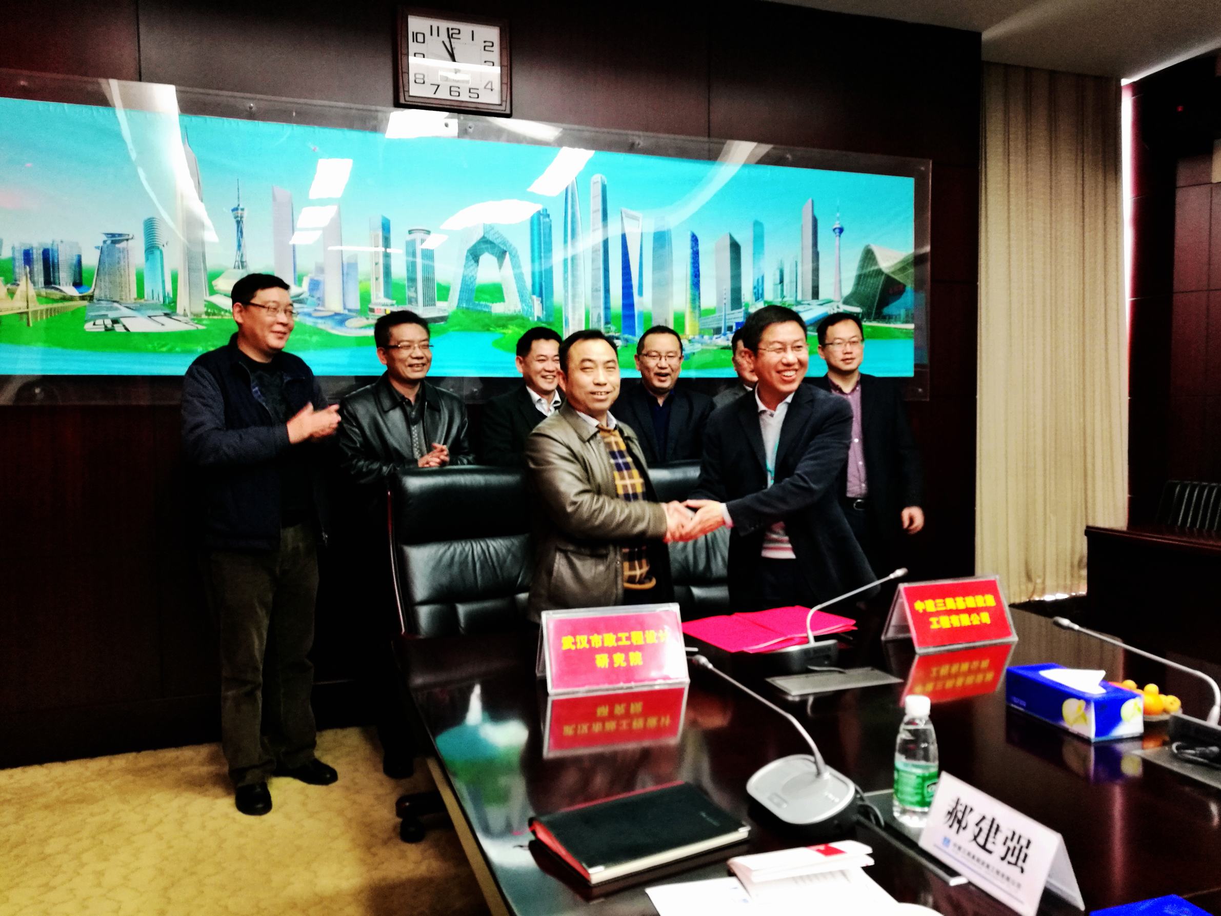 ??? 協議簽訂前,雙方進行了簡短的會談,公司董事長柯昌春和中建三局基礎設施工程有限公司董事長王洪濤就雙方各自的基本情況進行了介紹,就雙方戰(zhàn)略合作方向和前景進行了展望。雙方共同表示,期待以本次戰(zhàn)略合作協議簽訂為契機,推動雙方在更廣泛的領域進行合作,攜手進行市場開拓,實現互利共贏。
