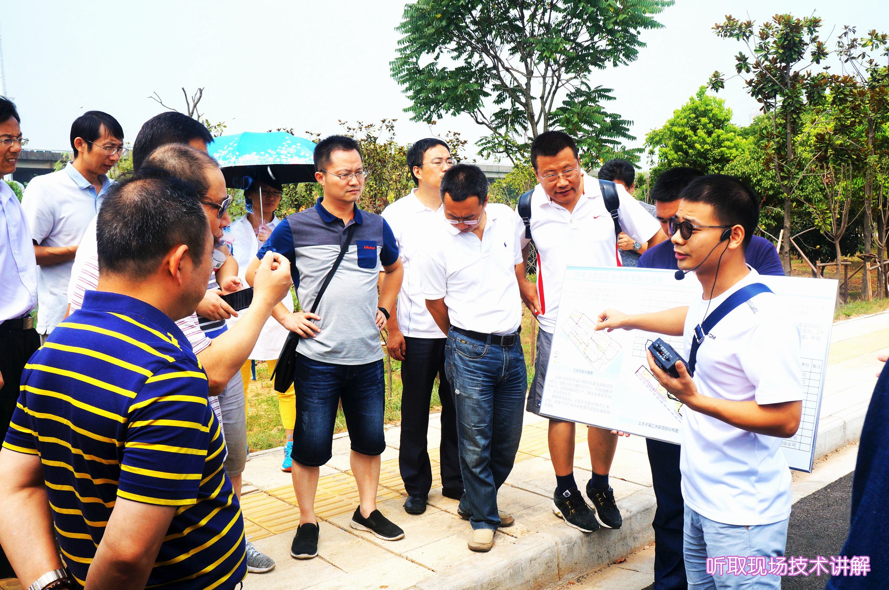 ??? 早上7點30分,參觀人員集中乘車,先后前往青山海綿城市建設(shè)示范區(qū)和四新海綿城市建設(shè)示范區(qū)進行實地參觀考察,聽取了公司主要設(shè)計人員關(guān)于海綿城市設(shè)計理念的介紹和取得的實際效果,并邀請施工單位負(fù)責(zé)人講解了海綿城市項目在施工中運用的技術(shù)和材料。參觀人員邊看邊聽邊記,詳細(xì)了解了海綿城市項目在設(shè)計、施工中的特點和需要注意的問題。