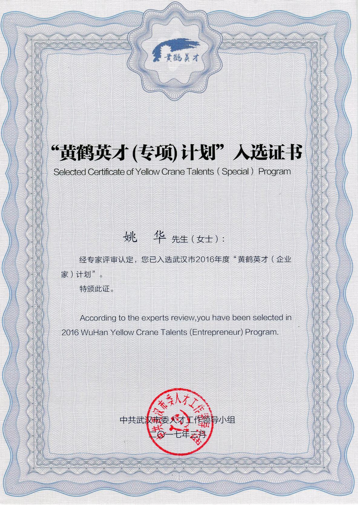 ??? “黃鶴英才(企業(yè)家)計劃”是為了鼓勵和表彰具有戰(zhàn)略思維、富于創(chuàng)新精神的企業(yè)領(lǐng)軍人物,姚華同志作為公司總經(jīng)理,善于創(chuàng)造性地開展工作,在他的領(lǐng)導下,公司經(jīng)營業(yè)績連創(chuàng)新高,業(yè)務類型日趨豐富,市場范圍逐步擴大,企業(yè)管理效能穩(wěn)步提升,在企業(yè)管理崗位上做出了突出成績。