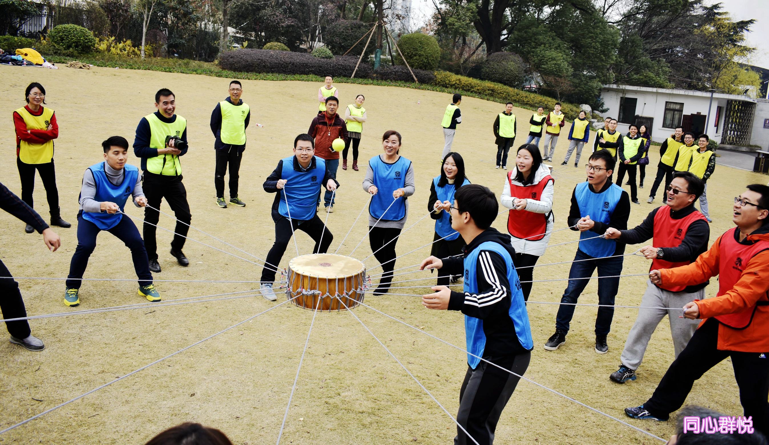 ??? 簡單的破冰游戲后,所有參與活動的人員被分成四支隊伍,本著“友誼第一,比賽第二”的精神進行了多種趣味項目的比拼:團隊展示,隊員們要在五分鐘內(nèi)確定隊名、隊呼和隊形展示;同心群悅,全體隊員共同牽動繩索控制鼓面,五分鐘內(nèi)獲取盡可能多的顛球次數(shù);呼吸的力量,由三男四女共同利用道具拼成七個進氣孔、一個出氣孔的呼吸機,并利用呼吸機吹破五個氣球;公主撕名牌,由四名女生扮演公主并挑選四名男生作為騎士分成四隊進行相互撕名牌游戲;碰碰球,由公司和社保處各出五男五女共十人進行接力碰碰球?qū)埂?/p>