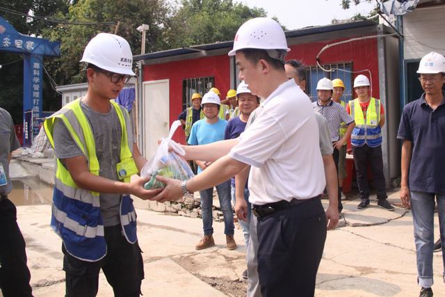 ??? 8月10日上午,公司黨委書記蔡輝、紀(jì)委書記兼工會主席趙世杰帶領(lǐng)綜合辦公室、勘測設(shè)計(jì)院、宏建公司、監(jiān)理公司等部門負(fù)責(zé)人,對部分外業(yè)現(xiàn)場進(jìn)行了走訪慰問,為高溫下堅(jiān)持工作的一線員工送上了一份清涼。