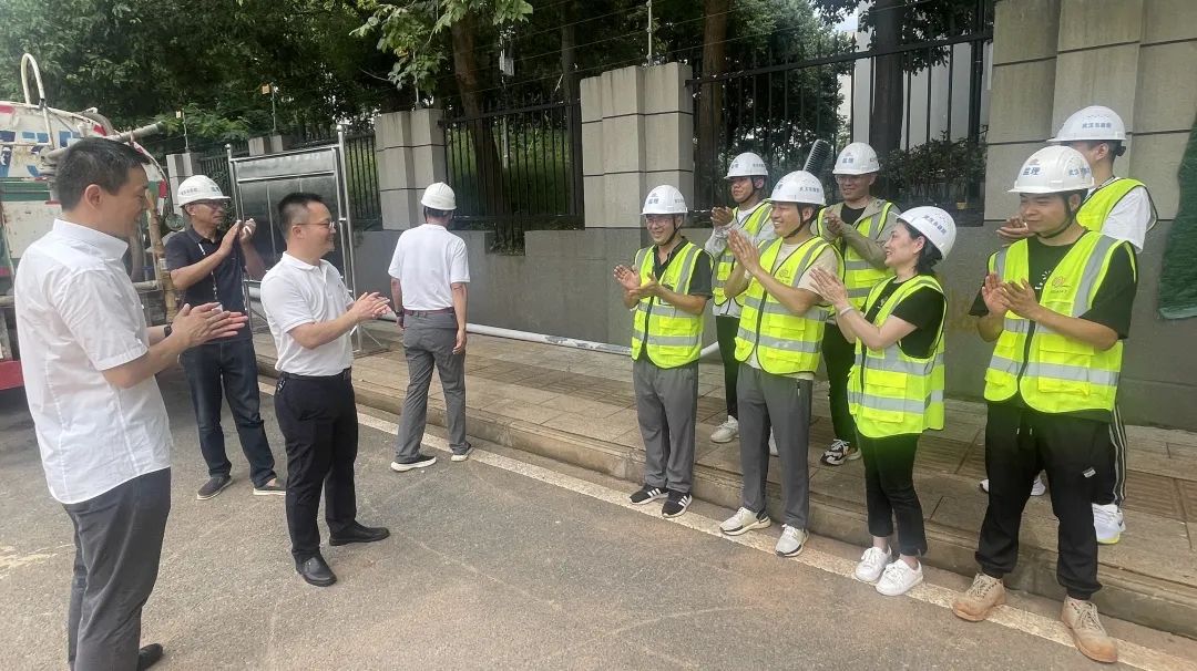 8月4日,市城投集團(tuán)副總經(jīng)理、公司黨委書(shū)記、董事長(zhǎng)汪小南看望慰問(wèn)一流城市電網(wǎng)建設(shè)——江漢區(qū)電力通道工程(一期)設(shè)計(jì)施工總承包項(xiàng)目現(xiàn)場(chǎng)人員。他為現(xiàn)場(chǎng)作業(yè)員工送上了防暑降溫用品,并叮囑他們時(shí)刻注意人身安全和身體健康狀況,安排好作息時(shí)間,合理搭配飲食,提高自我防護(hù)能力,做到勞逸結(jié)合,確保自身健康和施工安全。
