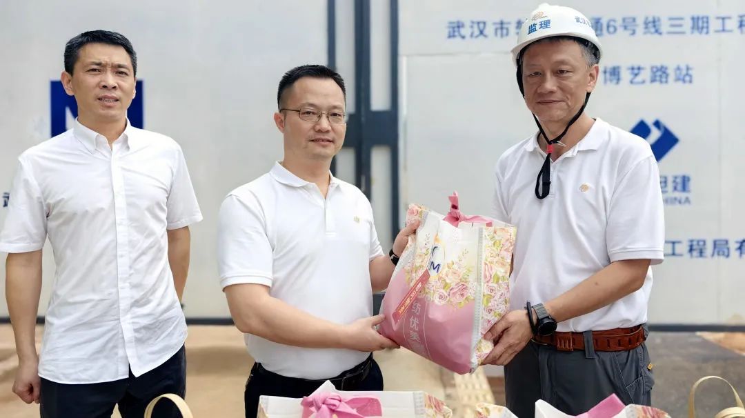7月24日,公司黨委副書(shū)記、總經(jīng)理陳建斌看望慰問(wèn)監(jiān)理公司所在的國(guó)博D11地塊新建居住商業(yè)項(xiàng)目和武漢市軌道交通6號(hào)線三期工程監(jiān)理項(xiàng)目現(xiàn)場(chǎng)人員。感謝他們?yōu)槌鞘薪ㄔO(shè)的辛勤付出,同時(shí)詢問(wèn)了他們的生活和工作情況,對(duì)大家高溫天氣下堅(jiān)守崗位、辛勤勞動(dòng)的精神表示高度贊賞。
